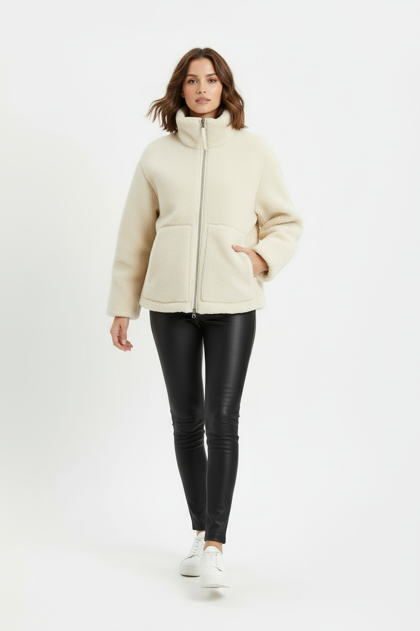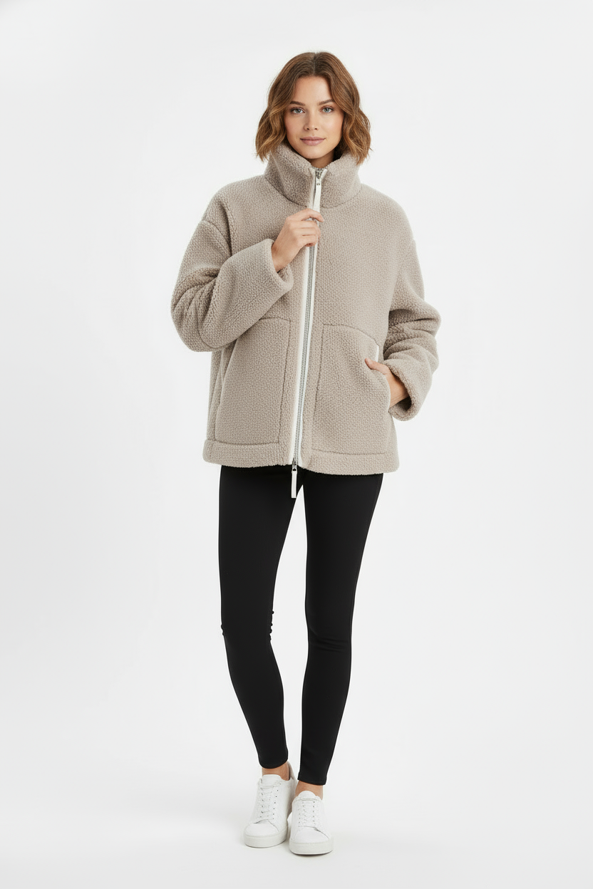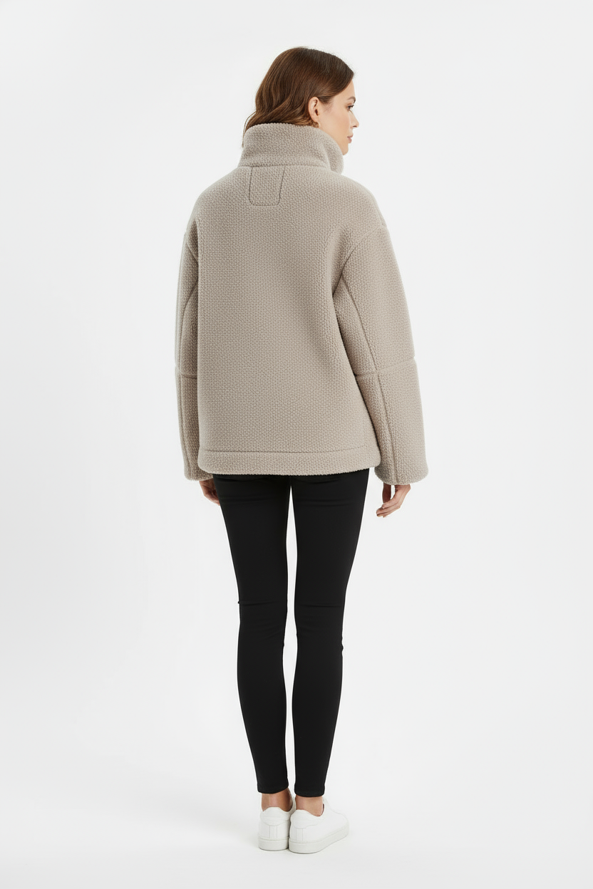 Claire | Kort Wolmix Jasje met Knoopsluiting -
