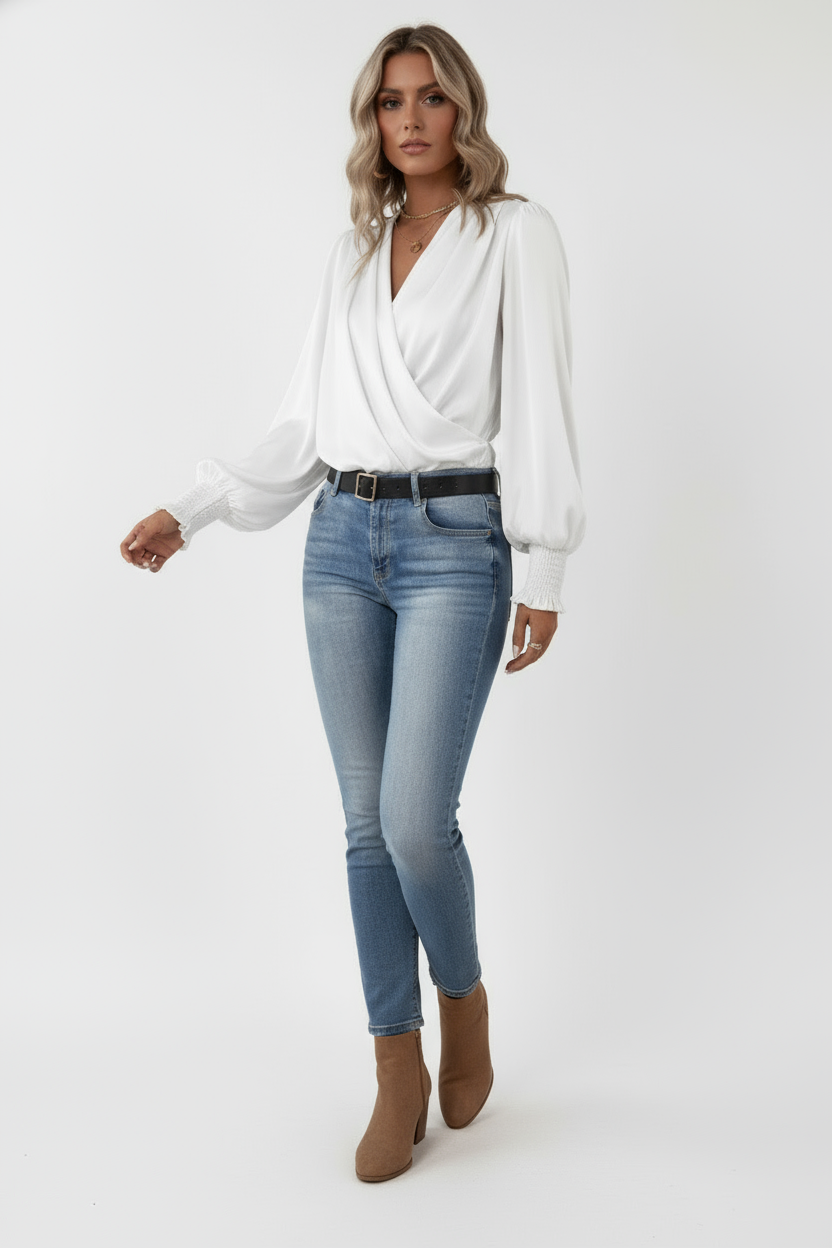 Sophie | Body met Lange Mouwen en Subtiele Pofdetails -